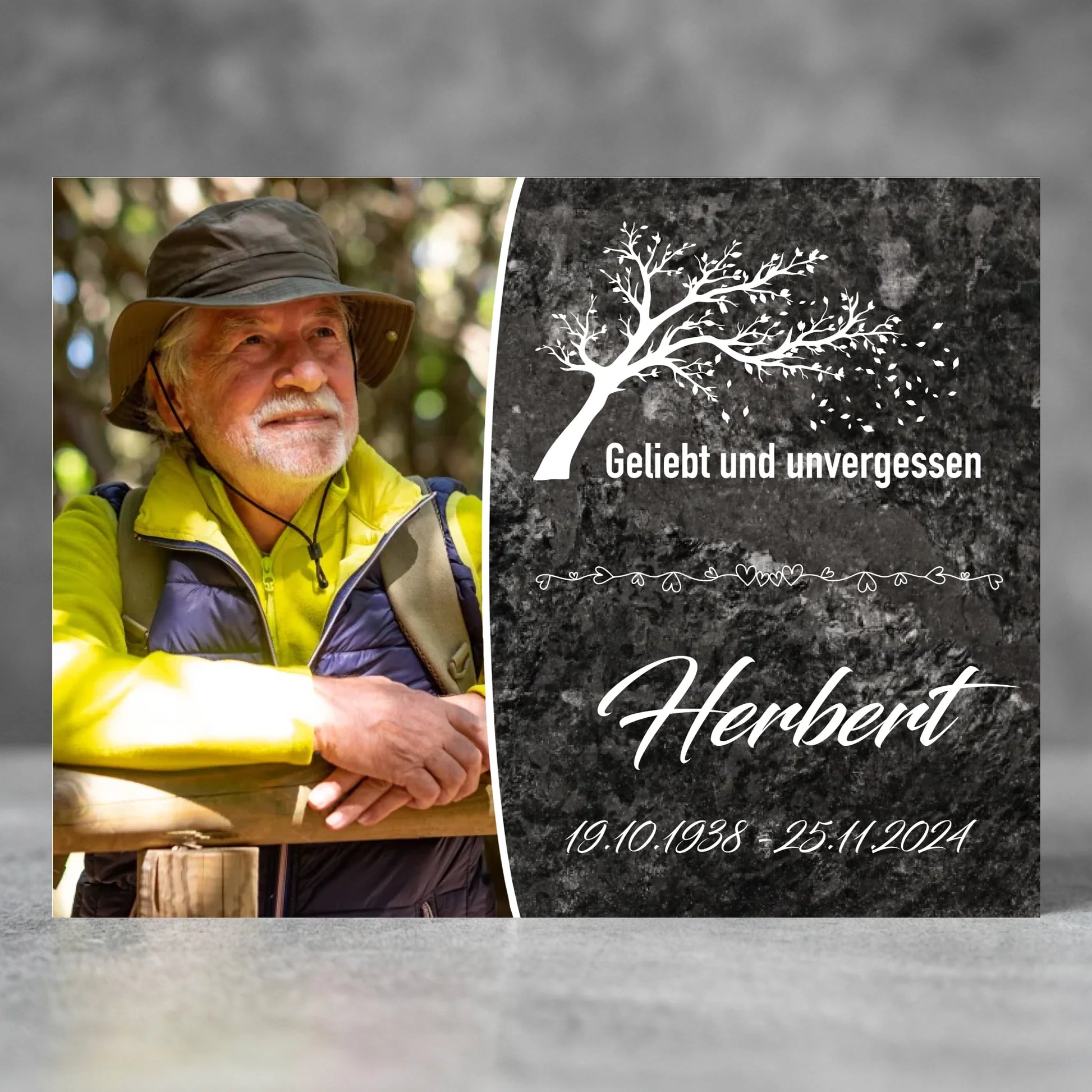 Jede Tafel wird mit großer Sorgfalt gestaltet, individuell geprüft und mit viel Liebe gefertigt. So entsteht ein Andenken, das nicht nur sichtbar, sondern auch spürbar von echter Qualität zeugt.