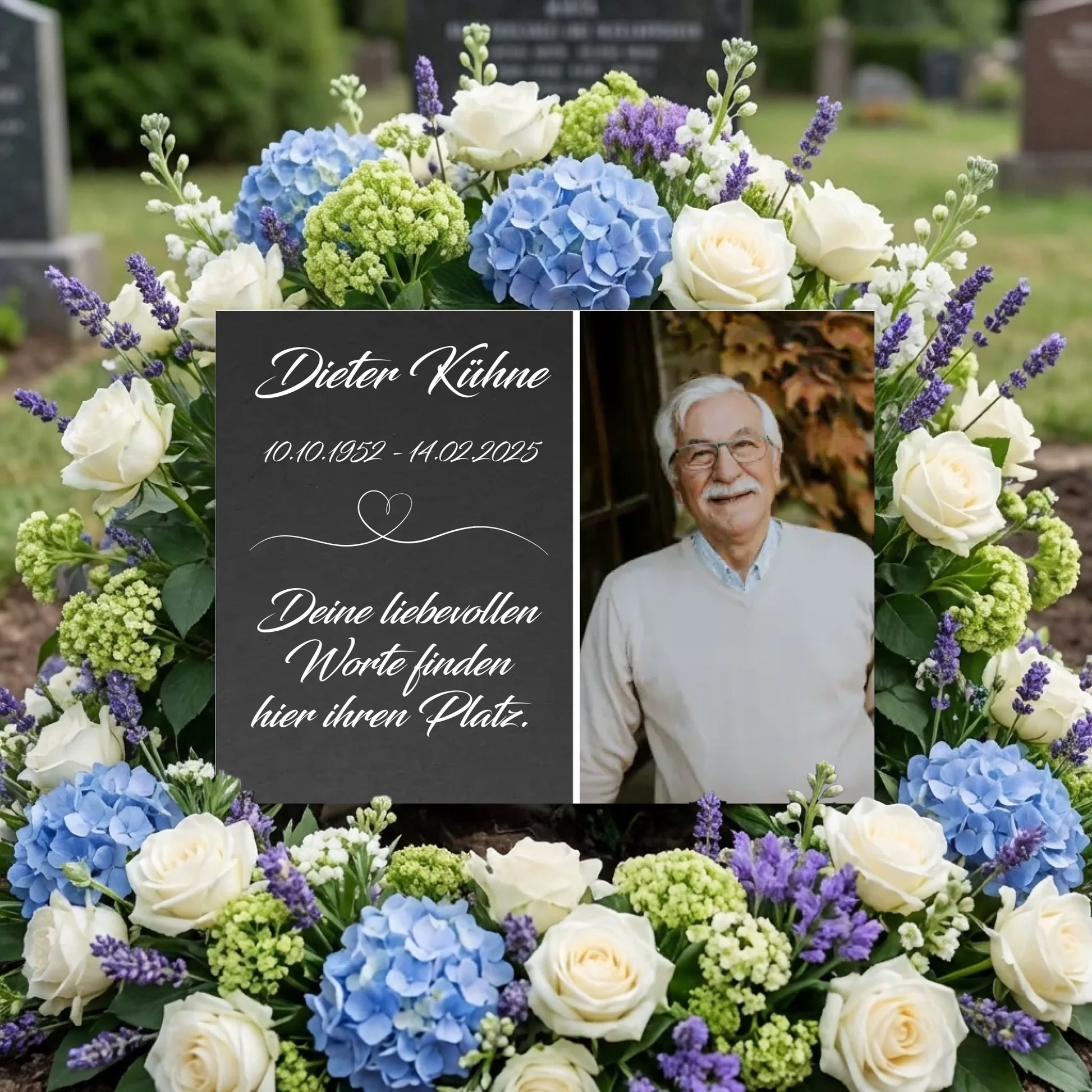 Aufsteller hingegen führen wir bewusst nicht im Sortiment. Der Grund: Es gibt eine große Vielfalt an Materialien, Designs und Größen – vom schlichten Metallständer bis hin zu rustikalen Holzaufstellern. Jeder hat hier ganz eigene Vorlieben, und wir möchten dir nicht irgendeine Lösung anbieten, sondern empfehlen, dass du gezielt nach einem Aufsteller suchst, der zu deinem persönlichen Stil und dem geplanten Einsatzort (z. B. Grab, Garten oder Innenbereich) passt. Gern geben wir dir nach dem Kauf Tipps, wo du passende Aufsteller findest.