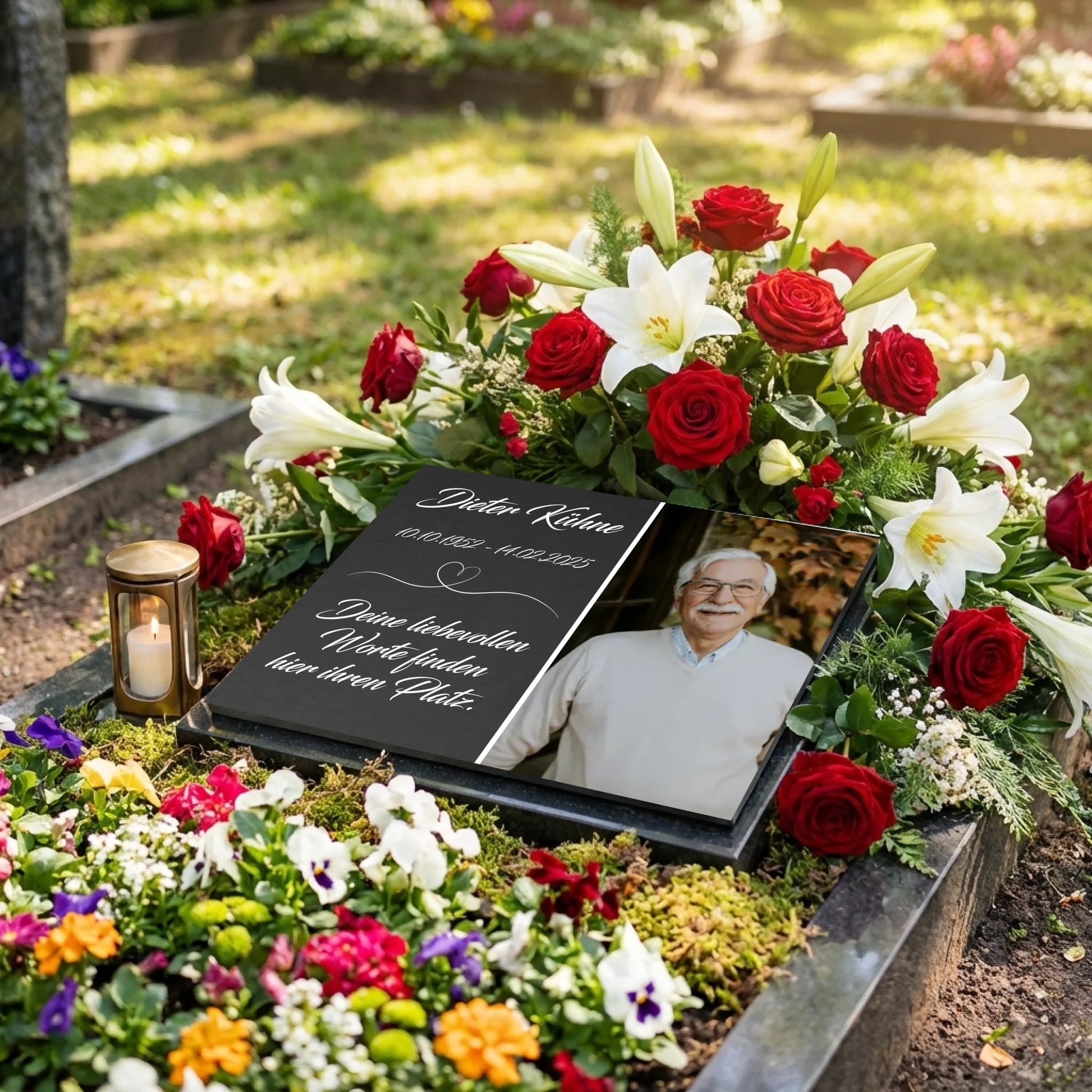 Jede Tafel wird mit großer Sorgfalt gestaltet, individuell geprüft und mit viel Liebe gefertigt. So entsteht ein Andenken, das nicht nur sichtbar, sondern auch spürbar von echter Qualität zeugt.